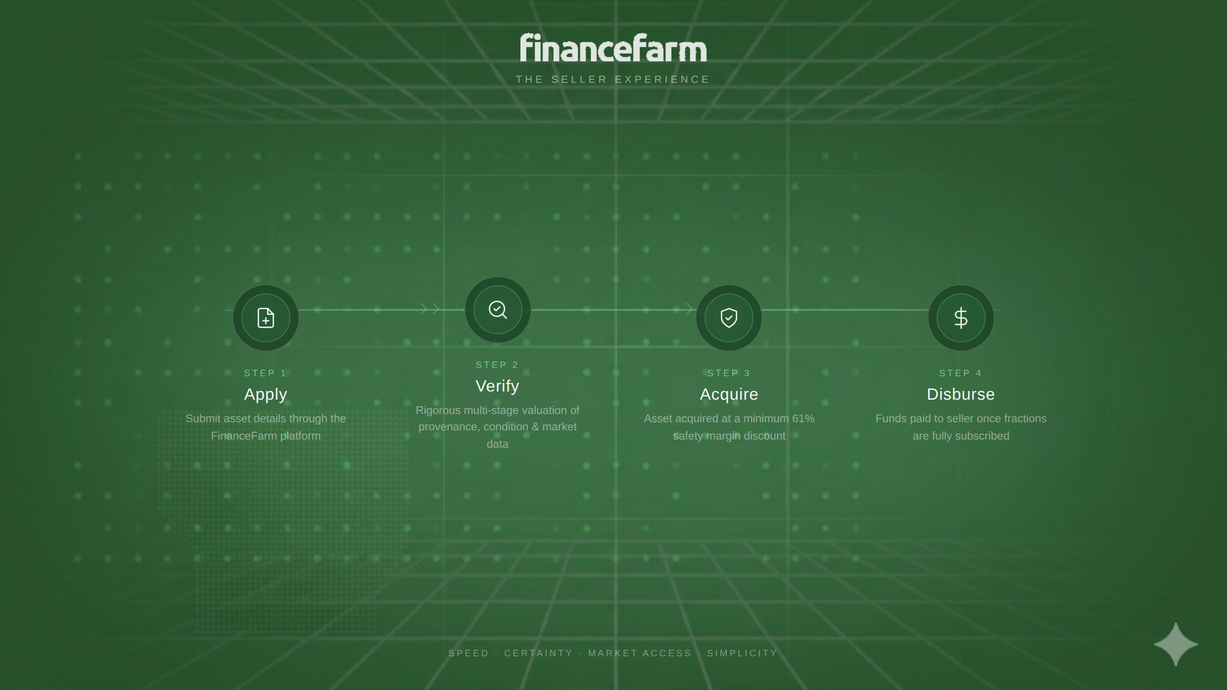 For asset owners, FinanceFarm offers something the traditional market cannot: a formally lean, time-efficient process that converts high-value assets into liquidity quickly and predictably.